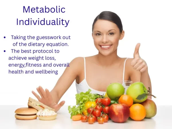 Metabolic Typing offers a scientific method for identifying the ideal diet and supplement requirements for each person. The comprehensive questionnaire helps to pinpoint your unique metabolic ‘type’ ,finding out how you burn energy (oxidation) -fast, slow, or mixed ,,how your Autonomic nervous system ( master regulator of metabolism ) is functioning -sympathetic vs parasympathetic and offers the best protocol to achieve weight loss, energy, fitness, immunity and optimal health.
